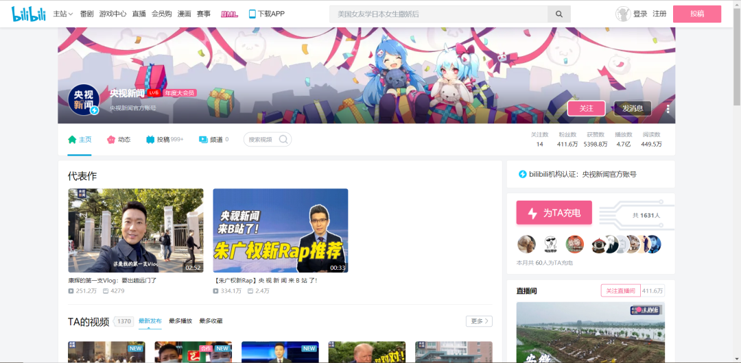 央视的新闻节目严肃且权威,长久以来形成良好的品牌效应,一向都是央视主流媒体内容供应的重中之重。但再重要的内容在有效传达给观众之前,都只是事实而不能成为新闻。为此,央视的新闻节目开始进军年轻人关心的各个领域,入驻B站抖音、发布vlog,成功抢占关注,逐步改变公众对央视内容生产的认知。