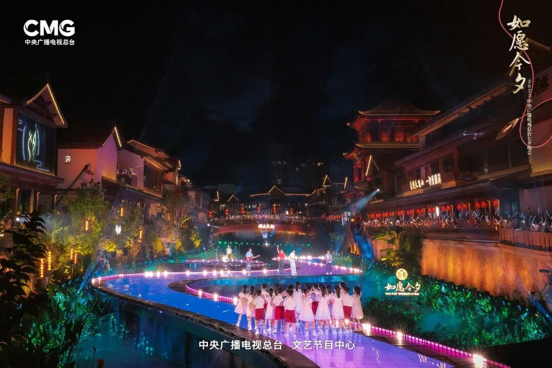 今年的七夕晚会在流淌千年的浙江天台县赭溪古河上搭建起一座诗意“水舞台”,带领受众置身于“水上鹊桥”“星河映月”般的桃源仙境,展开人至山水处、寄情山水间的秀美画卷。随着晚会在总台融媒体热播,必将有力提升浙江天台县的知名度和美誉度,推动当地文旅产业发展,成为新晋热门打卡地。