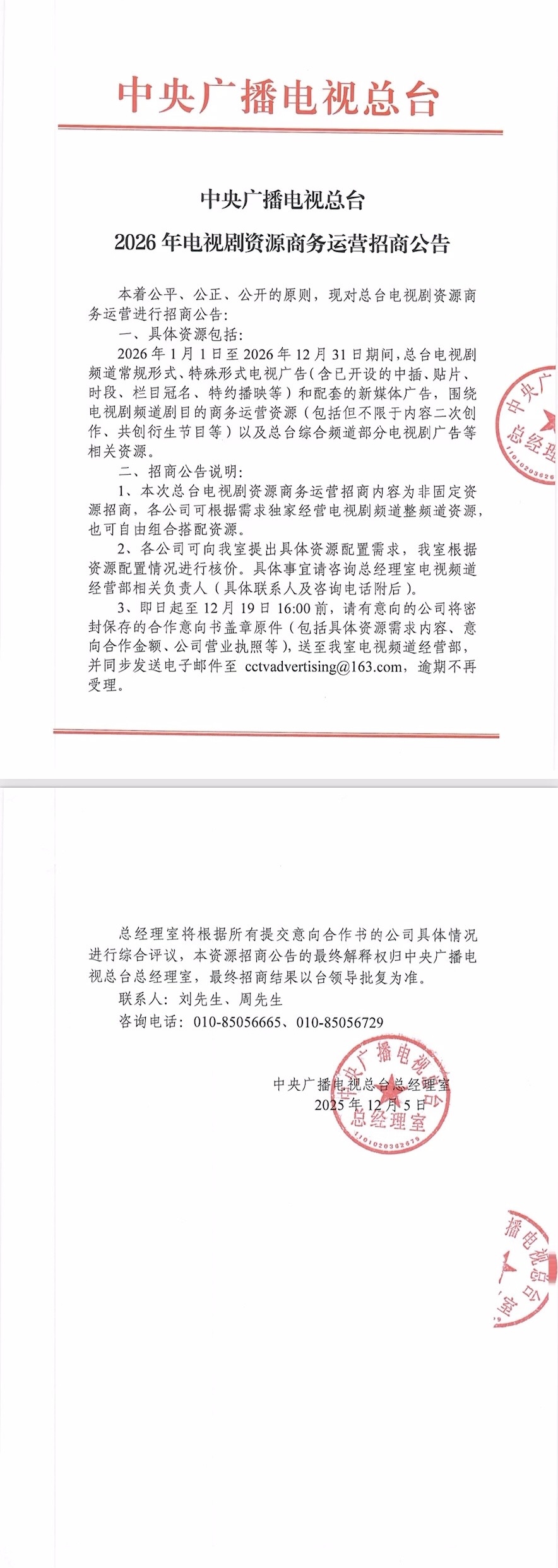 中央广播电视总台2026年电视剧资源商务运营招商公告