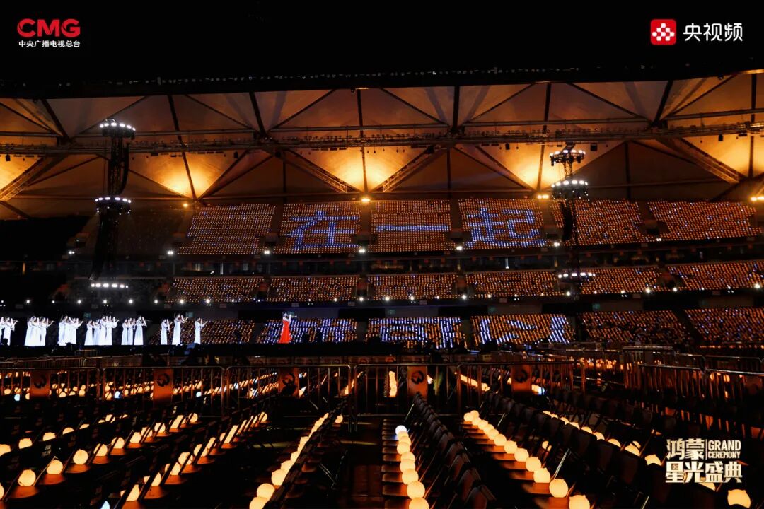 虽暂缓相聚,但温暖始终同频,节目组将深圳龙岗大运体育中心全流程彩排和录制的内容精编成节目。体育场内没有了观众,四万张座椅空无一人,但我们用四万盏灯球点亮这片星空。座席间闪烁的星光回应着我们的约定,传递着“在一起,就可以”的温暖信念。12月20日19:30,节目将在CCTV-2、CCTV-3、央视频、央视新闻、央视财经、微博、视频号、抖音等平台和账号同步播出。此番隔屏相聚,是序章,也是约定——明年,我们在《鸿蒙星光盛典2026》,再相聚。