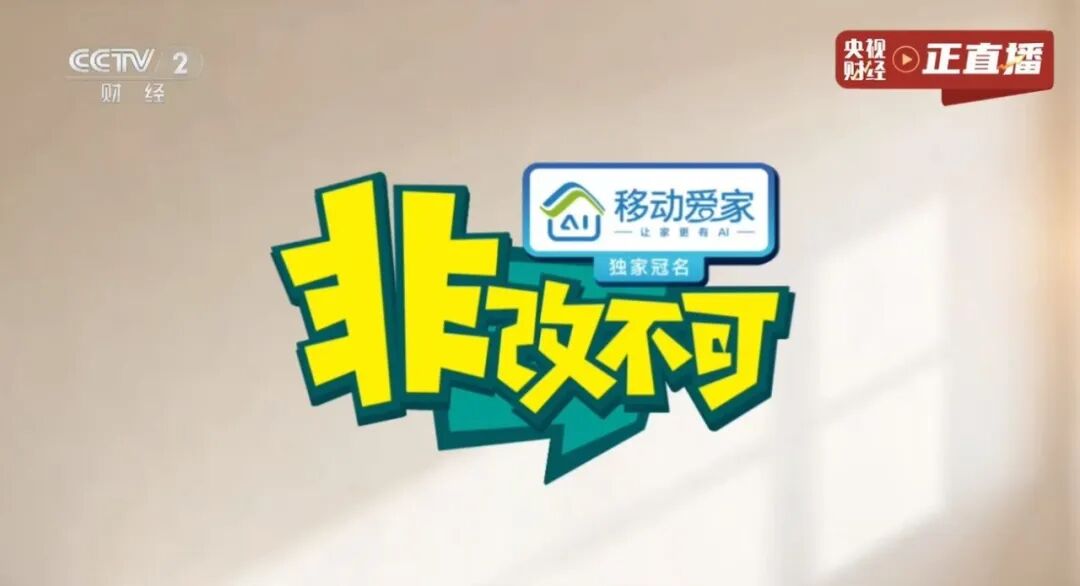近日,中央广播电视总台首档家居改造融媒体节目《非改不可》在央视财经频道及央视频、央视网、央视财经等新媒体平台同步播出。节目以创新视角破解家装难题,助力实现“住有所居”到“住有优居”,以鲜活的家装案例点亮百姓美好生活。首期节目融媒体总传播量超6500万次。《非改不可》由中国移动移动爱家独家冠名播出,天猫家享服务、蓝月亮、马可波罗等品牌合作。