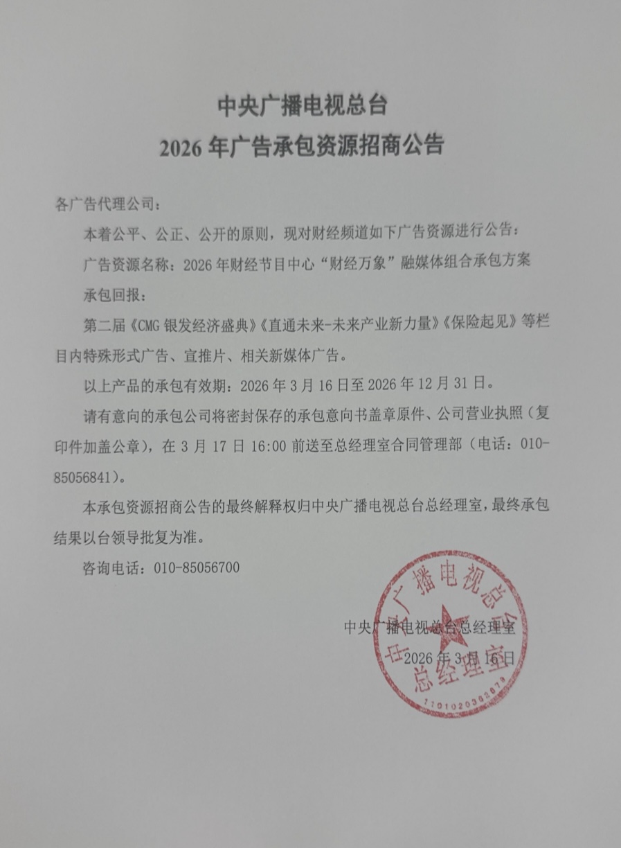 发布时间: 2026年03月16日 15:15 | 来源: 中央广播电视总台总经理室 |